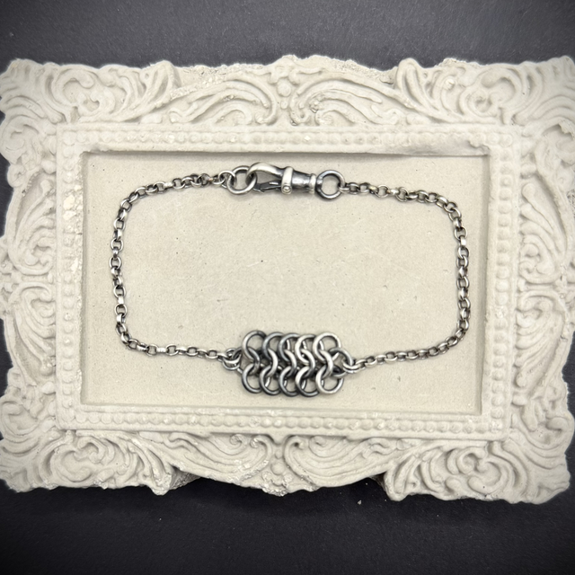 Chunky chainmail bracelet handmade in oxidised sterling silver. Bracelet length 7 1/2inches with an Albert swivel closure.